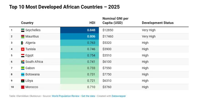 Les 10 pays les plus développés d’Afrique en 2025. Par Amina AOUADI.