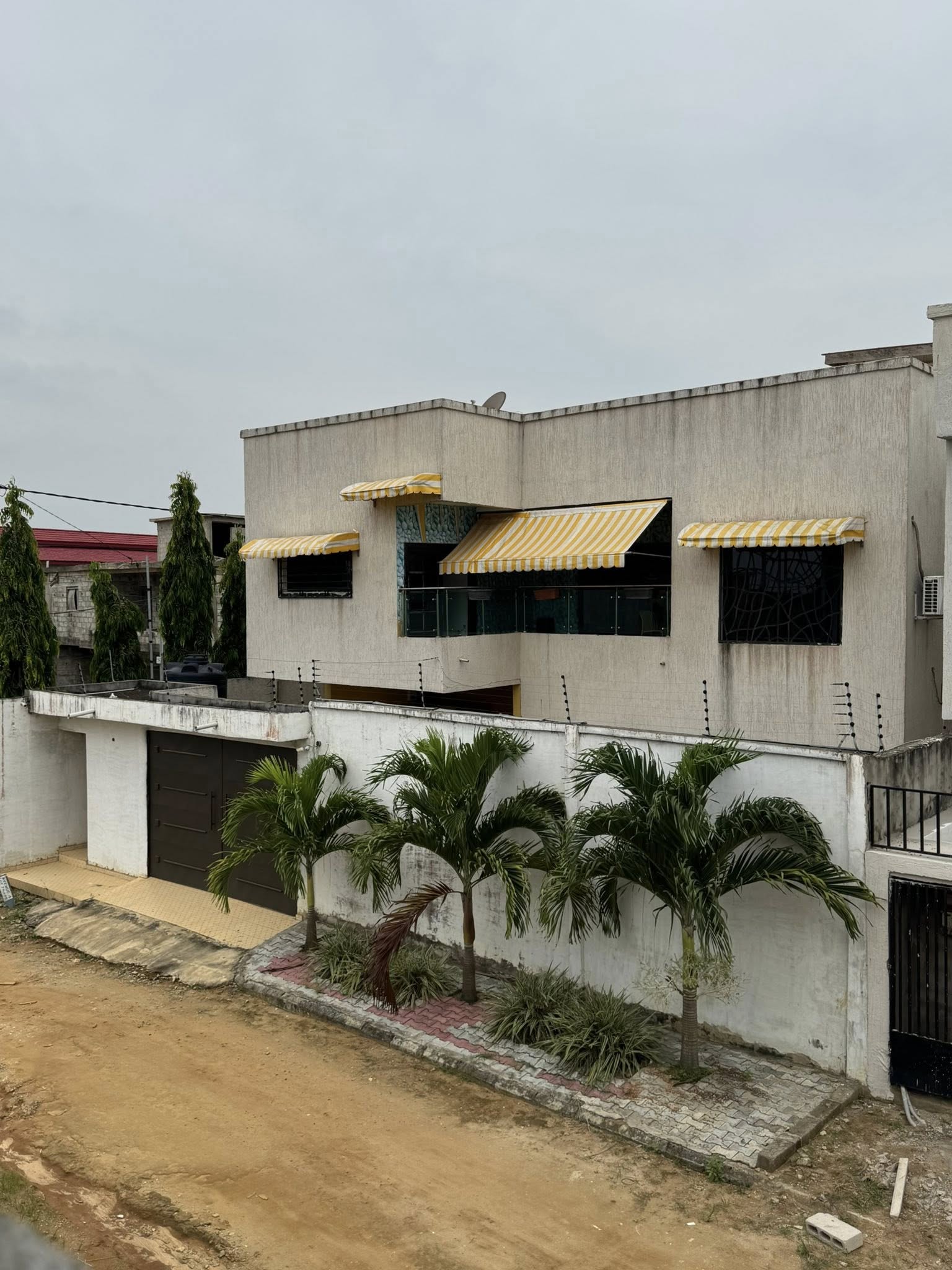 EN PLUS avec 2 toilette visiteur- un bureau - un magasin autonome et au dessus une chambre autonome avec un balcon - une très belle cour avant et arrière - Garage 2 voitures - une dalle avec un préau et toilette visiteur - un groupe électrogène installé et fonctionnel - caméra de sécurité et barbelés à