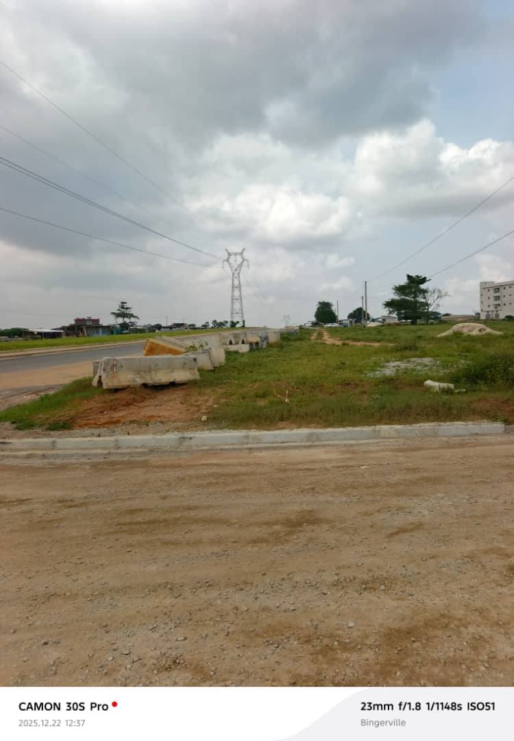 GRANDE OPPORTUNITE ! SUR LE PORLONGEMRNT DU BOULEVARD MITTERAND A BINGERVILLE ADJIN VERS ADDOHA UN BEAU SITE ENTRE 3 VOIES ET SUR LA VOIE PRINCIPALE QUI REJOINT LA VOIE INTERNATIONNALE QUI RELIERA ABIDJAN-LEGOS.
