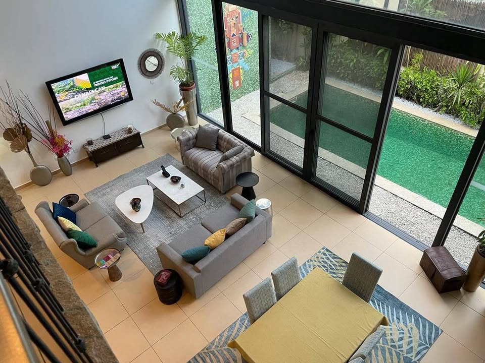 Beau séjours lumineux aéré, 4 chambres autonomes, salle à manger, cuisine européenne, débarras, salle d'eau visiteur, piscine, terrasse, dépendance…