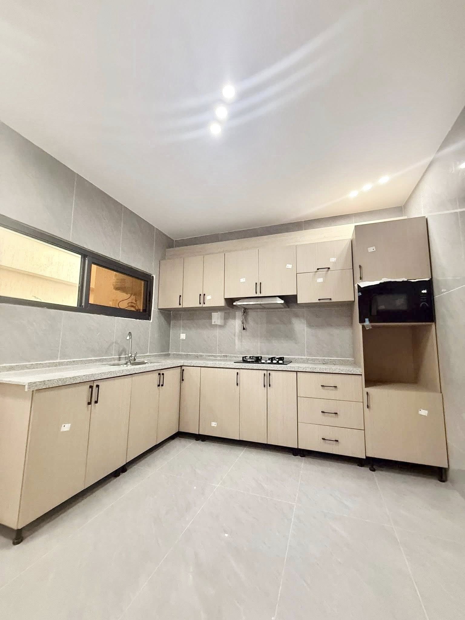 Une cuisine semi équipée avec de grandes rangements