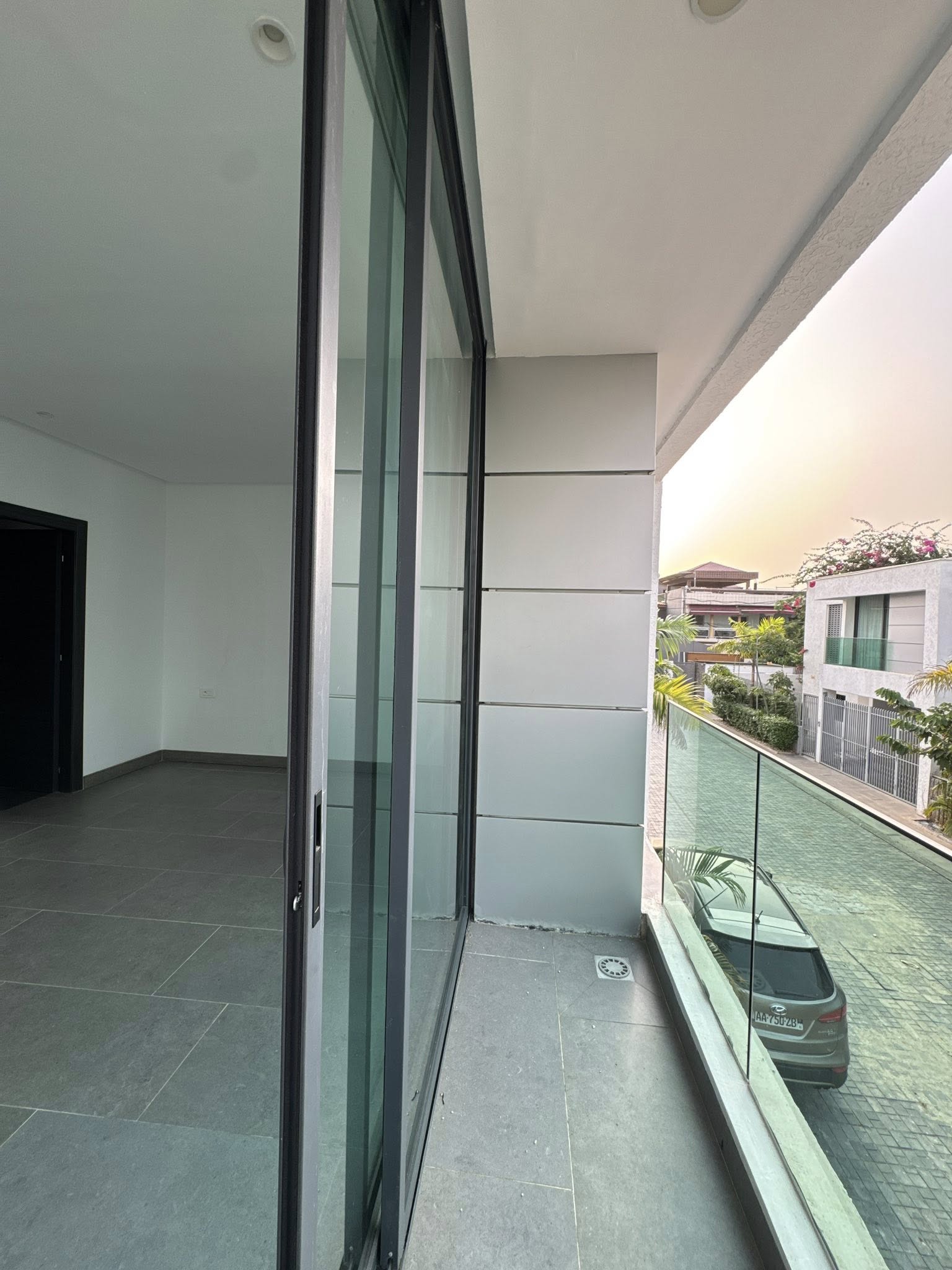 Un grand balcon baie vitrée