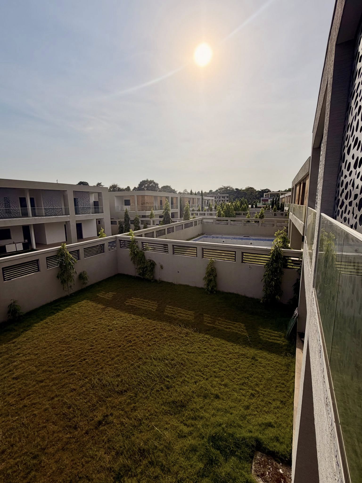 Magnifiques duplex de 7 pièces : 5 chambres autonomes et 2 salons spacieux, chacun avec piscine privée dans une cité juste derriere l'hopital mere-enfant a bingerville zone bitumée et résidentielle.